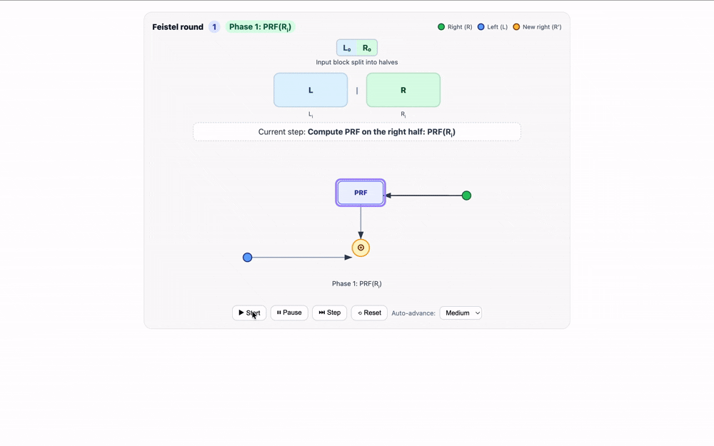 Just like GGM proves PRFs are possible, the Feistel construction proves that PRPs are possible from PRFs. Real-world block ciphers (DES, AES) go beyond this basic template, but the Feistel idea is the conceptual backbone of why reversible, secure encryption exists.